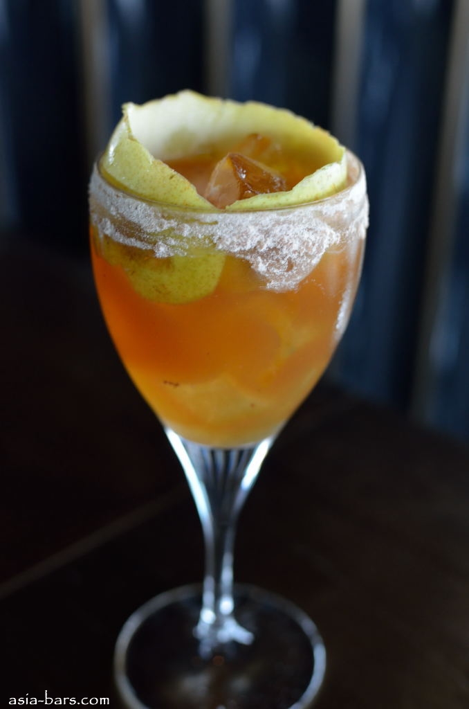 My Sweet Pear– Grey Goose Pear, lemon grass, Canton, Averna, lemon juice, Agave nectar with a cinnamon-sugar crust- from the bespoke AQUA LEGENDS cocktails
