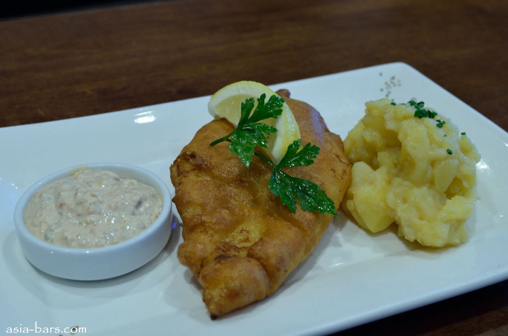From the Mittagesmenu Main course selection- Backfisch in Bierteig- Crispy Fish in Beer Batter, served with Potato Salad and Brotzeit® tartare sauce