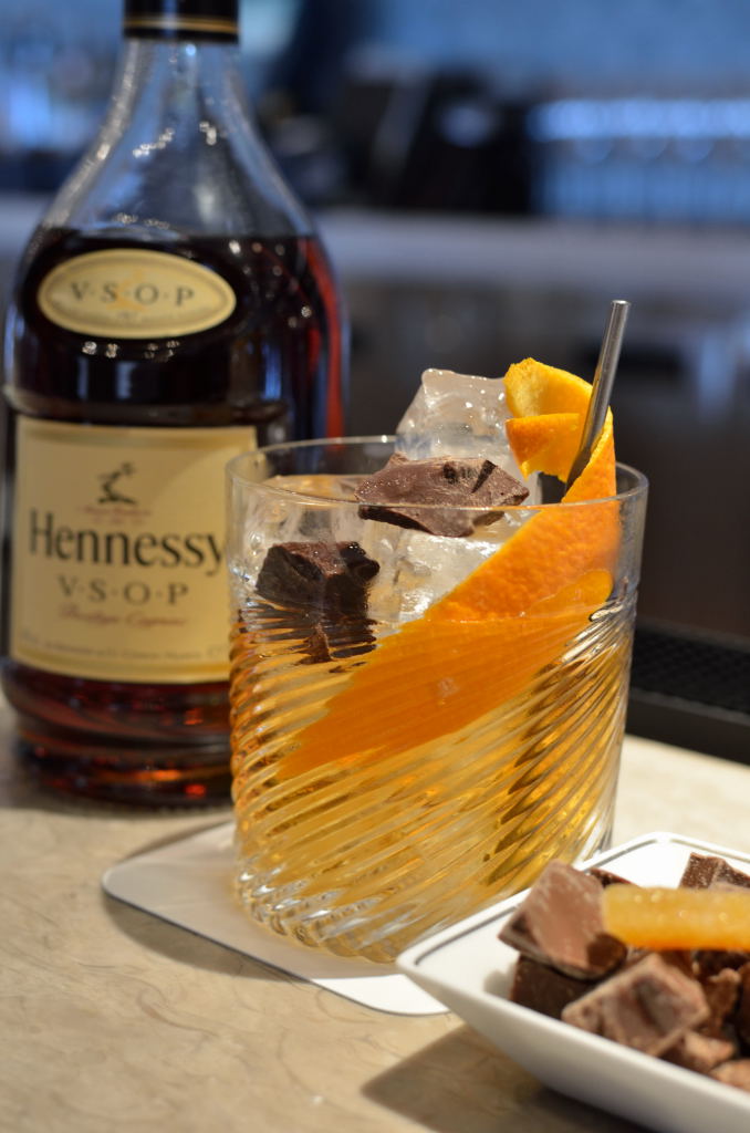 After Dark- Hennessy VSOP, Benedictine, bitters, maple syrup, Felchlin chocolate chunks – from the “DELUXE COCKTAIL” selections