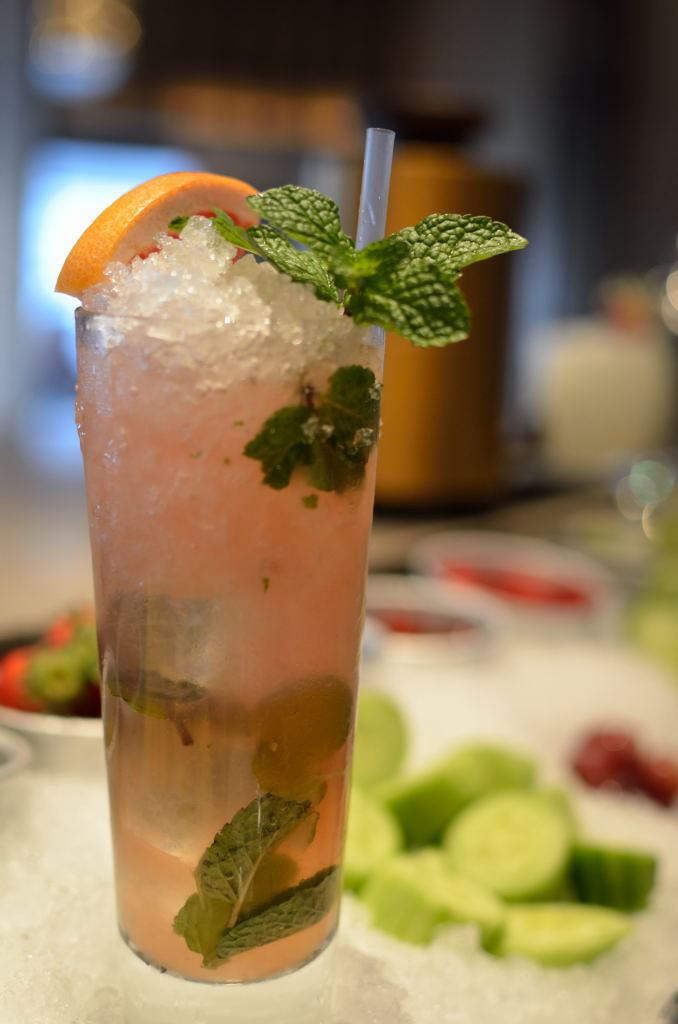 Grapefruit Julep- Belvedere Grapefruit Vodka, grapefruit, lime, honey, grenadine, mint – from the “DELUXE COCKTAIL” selections