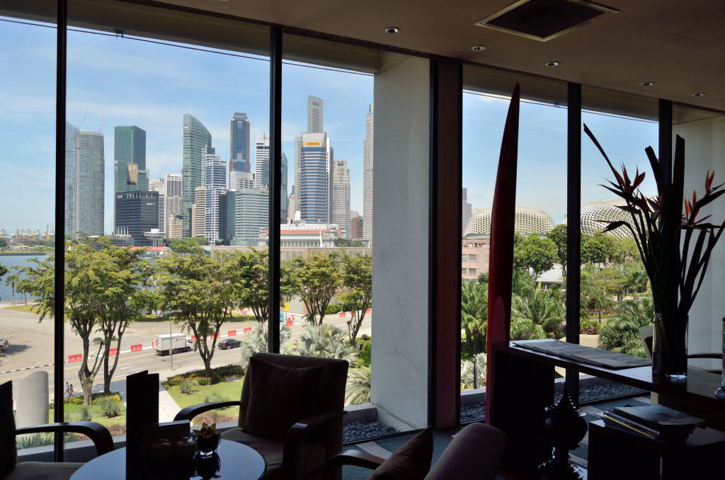 The daytime view from the Lounge over Marina Bay and to the Singapore CBD