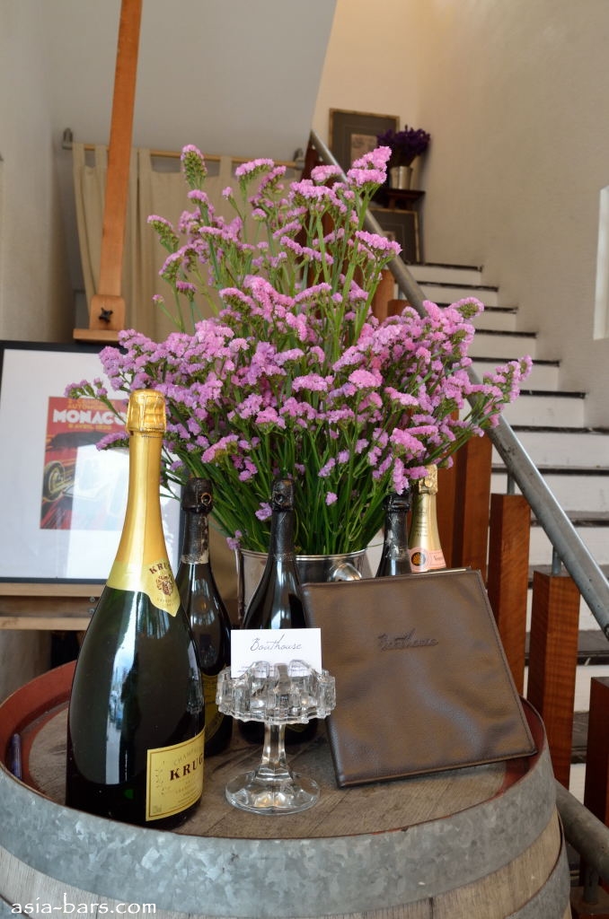 The Boathouse Restaurant occupies the entire first floor of the building, with the intimately proportioned open-plan dining room seating a maximum of 45 diners only. A few further tables are available on the small outdoor terrace- weather permitting. The interior design was created with a pared-back elegance, featuring raw concrete screed flooring, dark timber furniture and white walls and ceilings. Large opening windows along both side walls bathe the room with natural daylight during the day. Table settings are classically elegant with crisp white linen tablecloths and napkins. The dining room exudes an atmosphere of refined but relaxed dining.