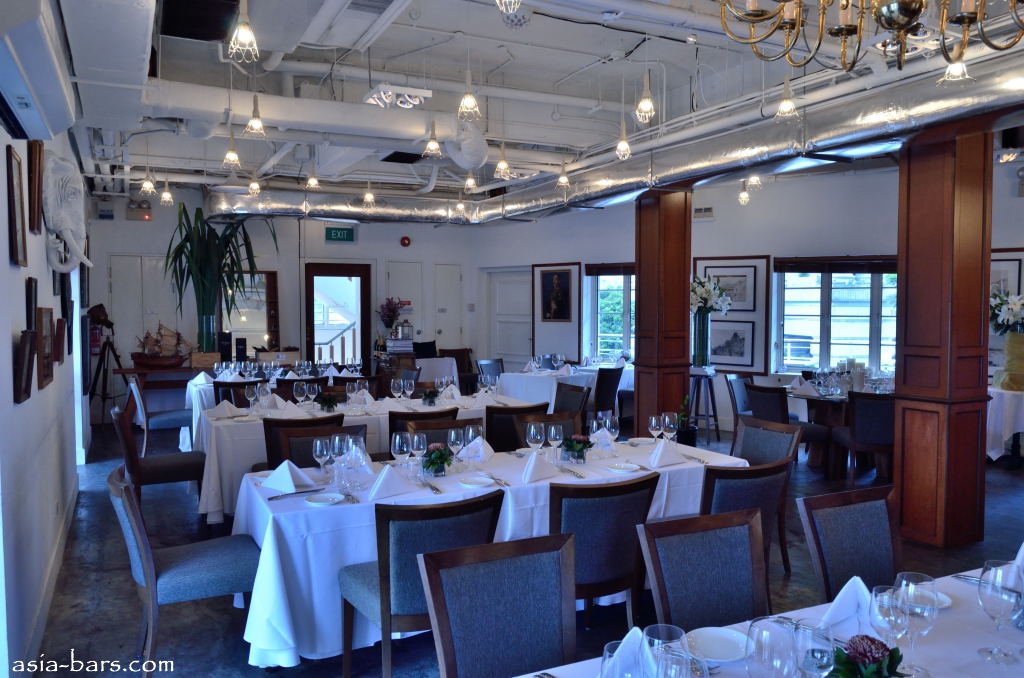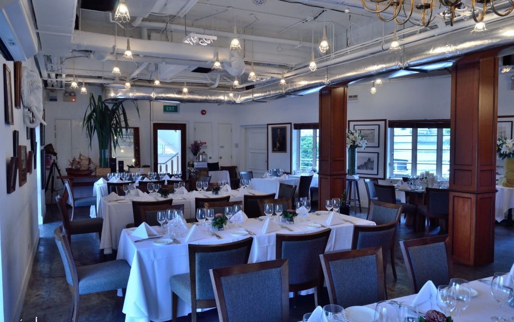 Decorative elements include an uncluttered collection of colonial period pictures of Singapore society and notable historic events that link to the heritage of the building. A number of nautical artifacts make the connection with the original function of the Waterboat House.