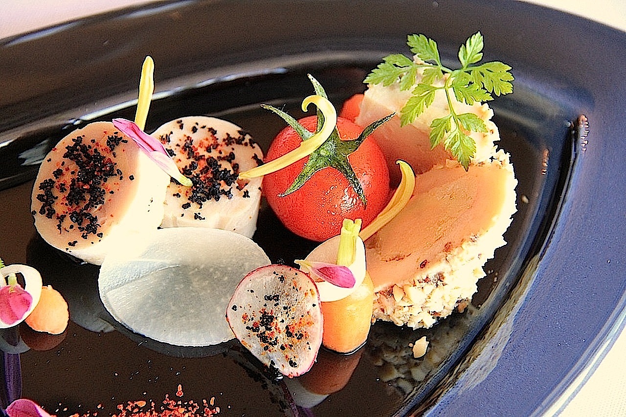 Ballotine de Poulet – Landes chicken roulade with ballotine stuff foie gras with truffle vinaigrette and petit salad