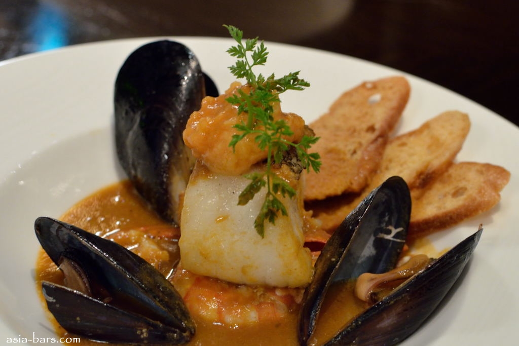 Cod in Petit Bouillabaisse- with Shrimps and Mussels in Rich Saffron and Tomato Broth, Rouille Mebas’s