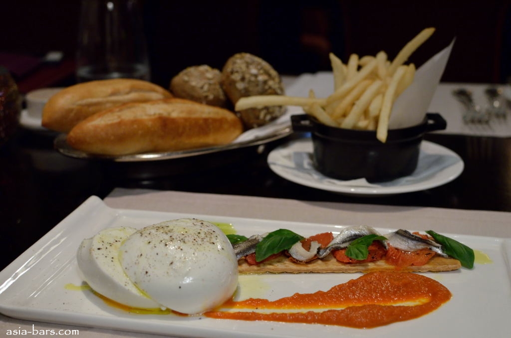The bar features a fine wine library of 800 bottles