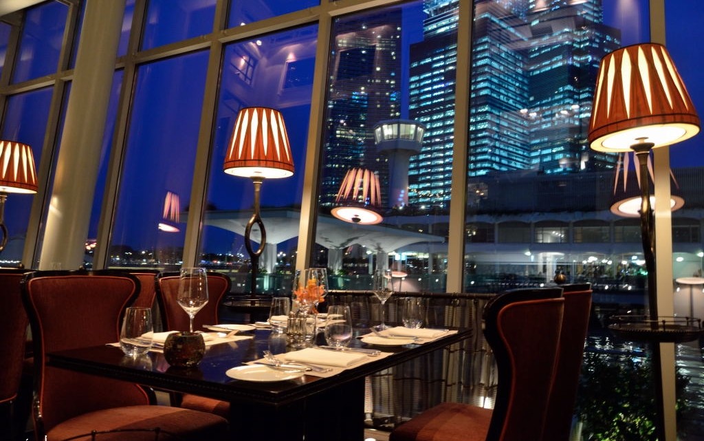 Window table at Clifford overlooking the waterfront of Marina Bay