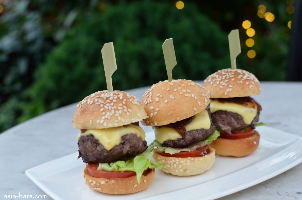 Gourmet snacks include the plate of Mini Wagyu Beef Burgers –with Aged Cheddar and Tomato BBQ Sauce ( 3 pcs)