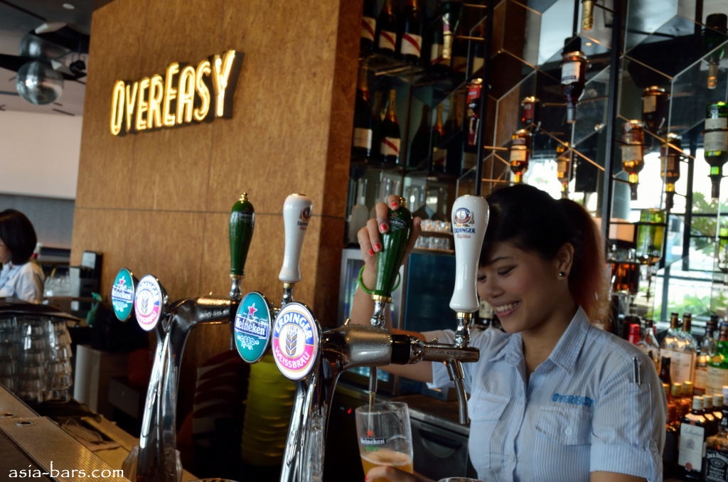 Other dishes include selections of Small Plates for sharing over drinks- Crispy Whitebait with lime and dill aioli; Famous Cheesesteak Sliders; and Handcut Haystack Fries with parmesan and rosemary. Also available are Soups & Salads, and Large Plates- pastas, fish and steaks. OverEasy also have a popular Set Lunch Menu at S$23++, and a Late Night Supper Menu for weekend nights only- served from 10:30 pm ~ 3:30 am.