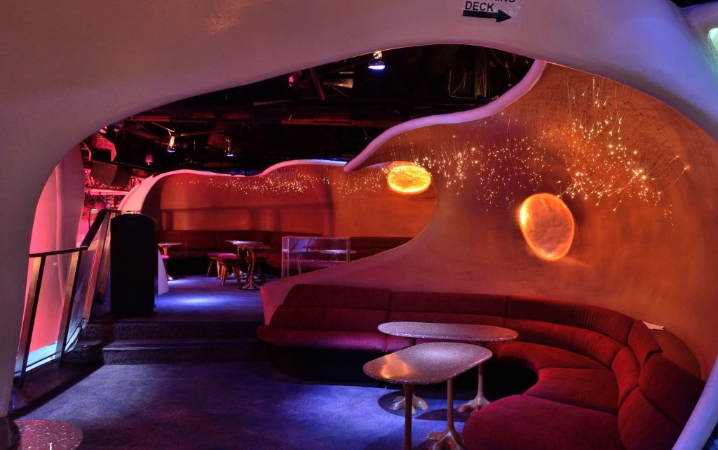 Numerous bars are located within the contours and levels of the main room, with a separate Members Lounge area on the upper level overlooking the dance floor.