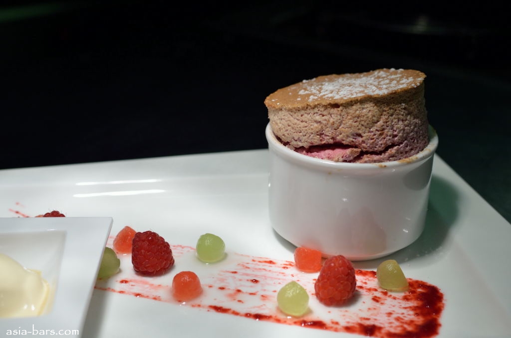 Raspberry So’ffle– served with white chocolate sauce. From the Desserts of the Day selection.