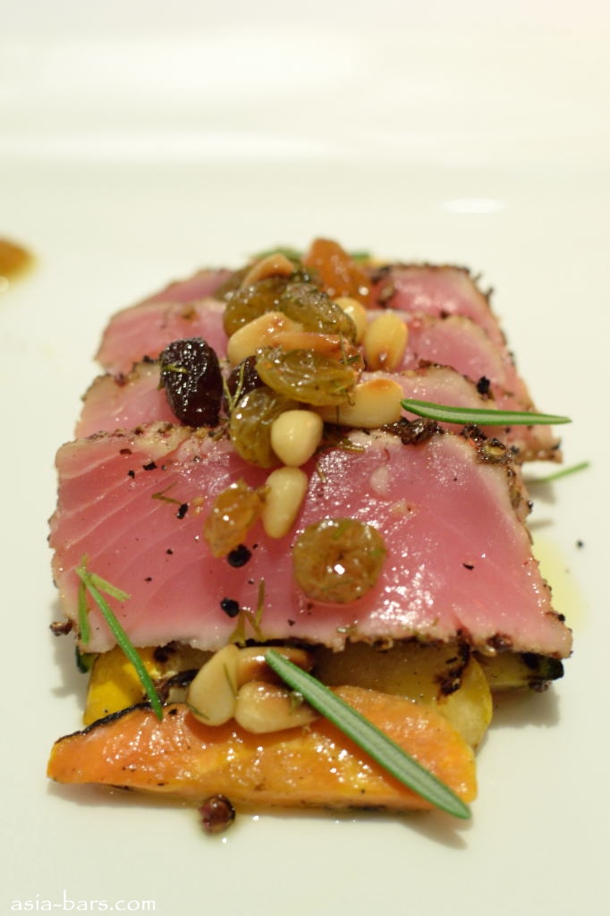 Pepper crusted Tuna Loin with grilled marinated vegetables