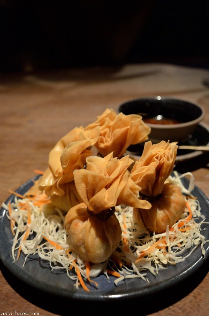 Thung Thong- filled with shredded chicken , carrots and shrimps