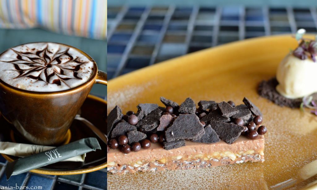 Cappucino with Chocolate Bar Pie– SKYE Style Bar Pie served with home made mandarin ice cream