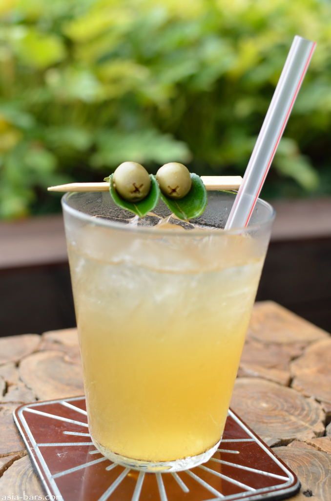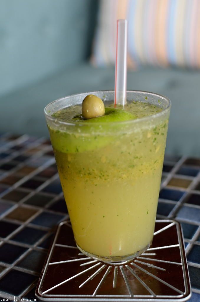 Cheech & Chong- Apple Berry juice, fresh lemon juice, elderflower monin, green olives, lime leaves, topped with soda