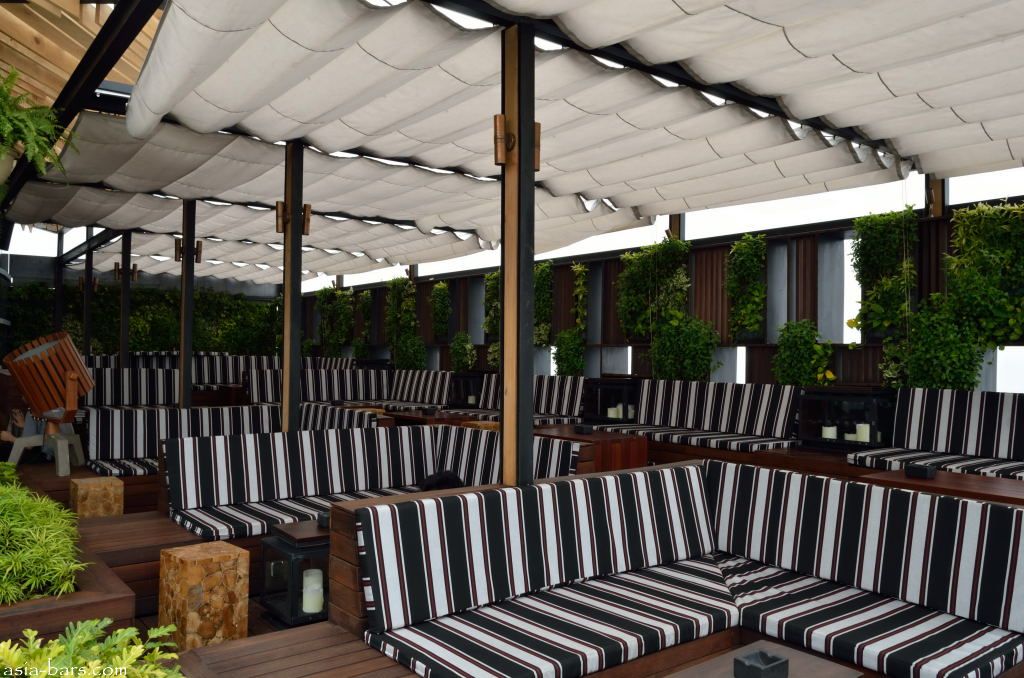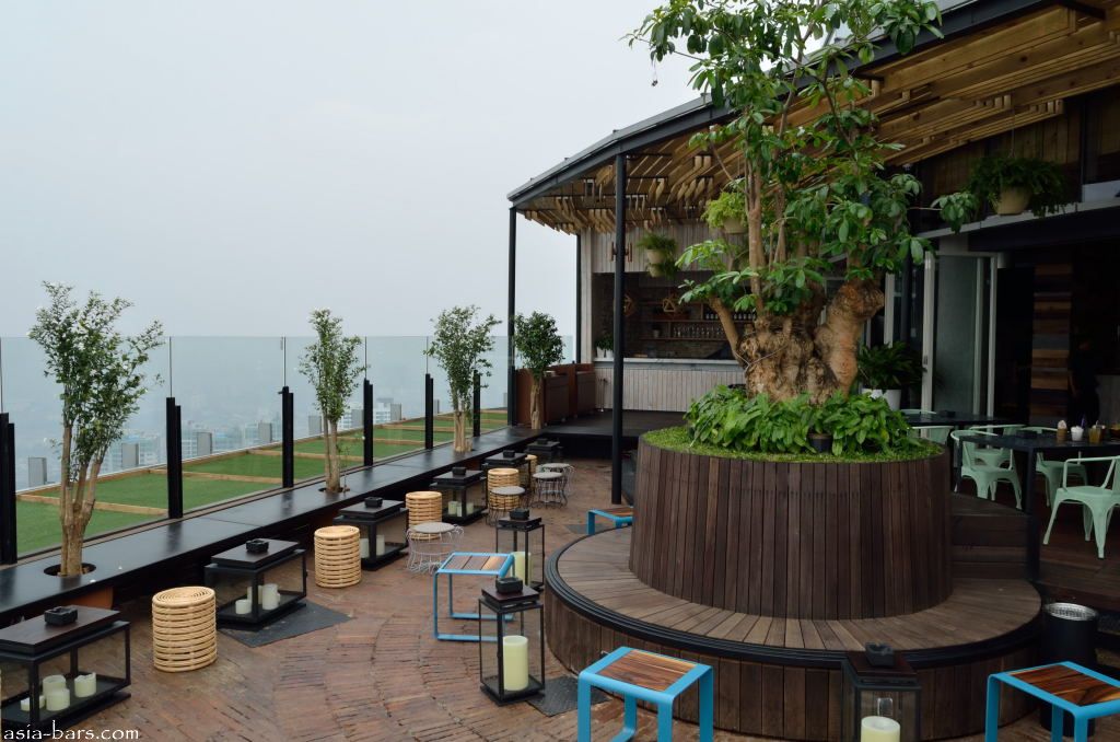 The rooftop outdoor terrace, with bistro tables undercover in the background