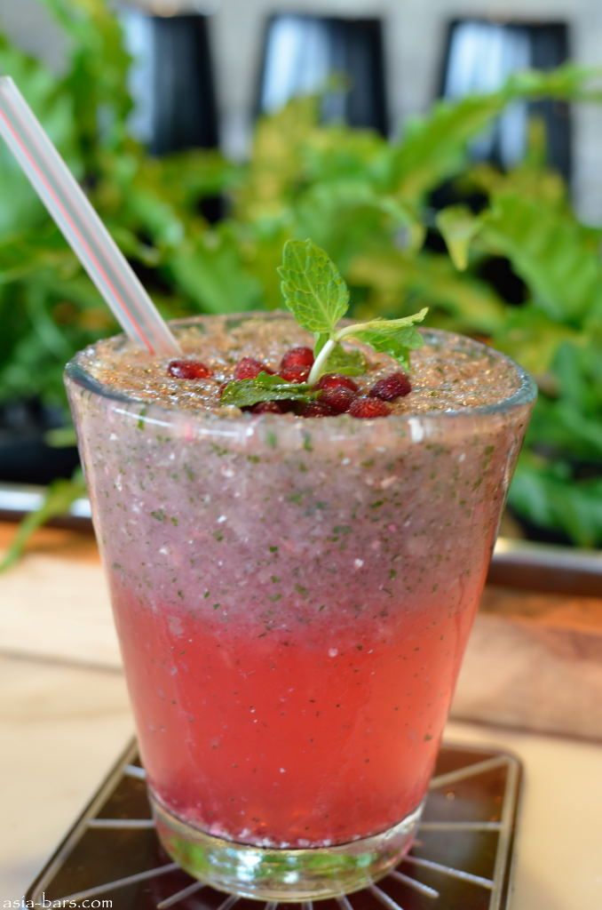 The Shaman– Signature Cocktail– Pomegranate and starfruit chunks blended with crushed ice, Absolut Citron and mint