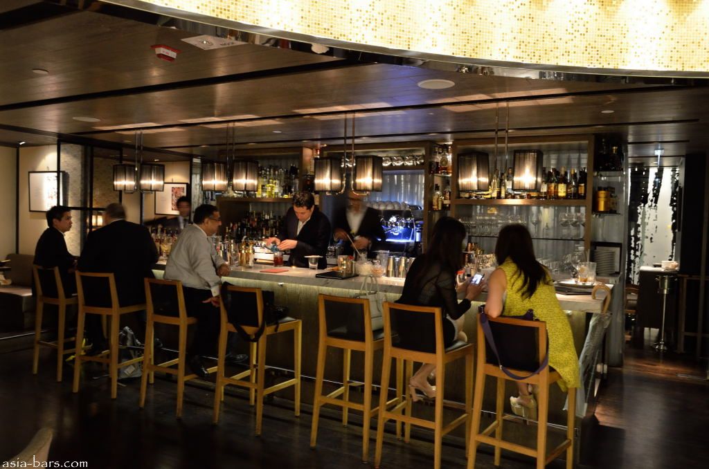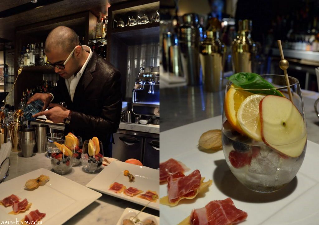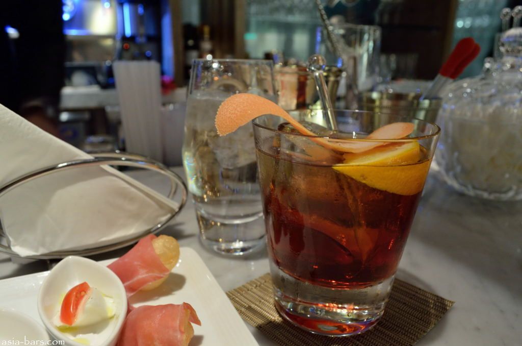 The drinks list has been created by globally renowned mixologist Giancarlo Mancino – a “compendium” that runs to 42 pages of cocktail history and recipes. Giancarlo has taken the glamour of Fellini with a large pinch of Bombana’s Italian palette, added a measure of the forbidden speak-easy era classics, and mixed up some new and old cocktail recipes, that bring back the forgotten spirits, bitters and ingredients that made for the enduring appeal of the classic cocktails. A popular attraction of the Bar at Otto e Mezzo is the daily “Milano-style aperitivo“, where selections of “stuzzichini” ( appetizers / antipasto), accompanied by a wide variety of martinis and premium wines by the glass, are served from 5pm to 9pm.
