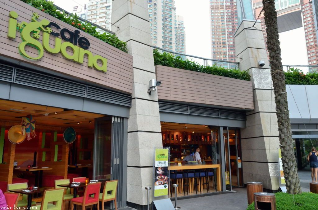 Mexican restaurants and bars inevitably seem to project an exuberant atmosphere of casual eating and drinking. Cafe Iguana in Hong Kong is no exception. A modern Mexican-themed restaurant and bar, Cafe Iguana serves up the classic Mexican fare, together with an impressive selection of premium quality tequilas. Located in the West Kowloon district of Hong Kong, on the open-air rooftop rotunda of the Elements upmarket shopping and lifestyle mall, Cafe Iguana is conveniently accessible to both visitors in the mall, local residents, and the multitude of office workers from the adjacent 118 level ICC Tower. The restaurant occupies a curving space that spreads out onto the open-air rotunda setting- with a combination of indoor and outdoor table settings. Bright and breezy during the days, in the evenings Cafe Iguana, and the other venues around the rotunda of Elements, lure a good mixed crowd wanting to unwind after a busy day with some stiff drinks and decent food in a relaxed, chilled out atmosphere .