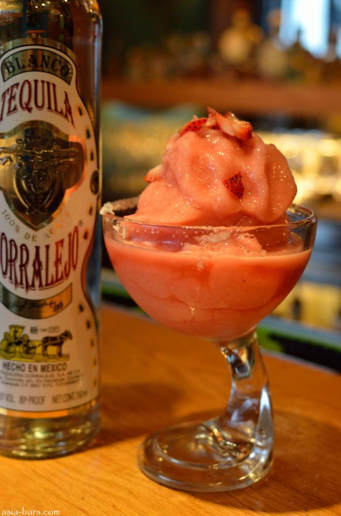 Strawberry Margarita- classic frozen margarita with Gold Corralejo tequila