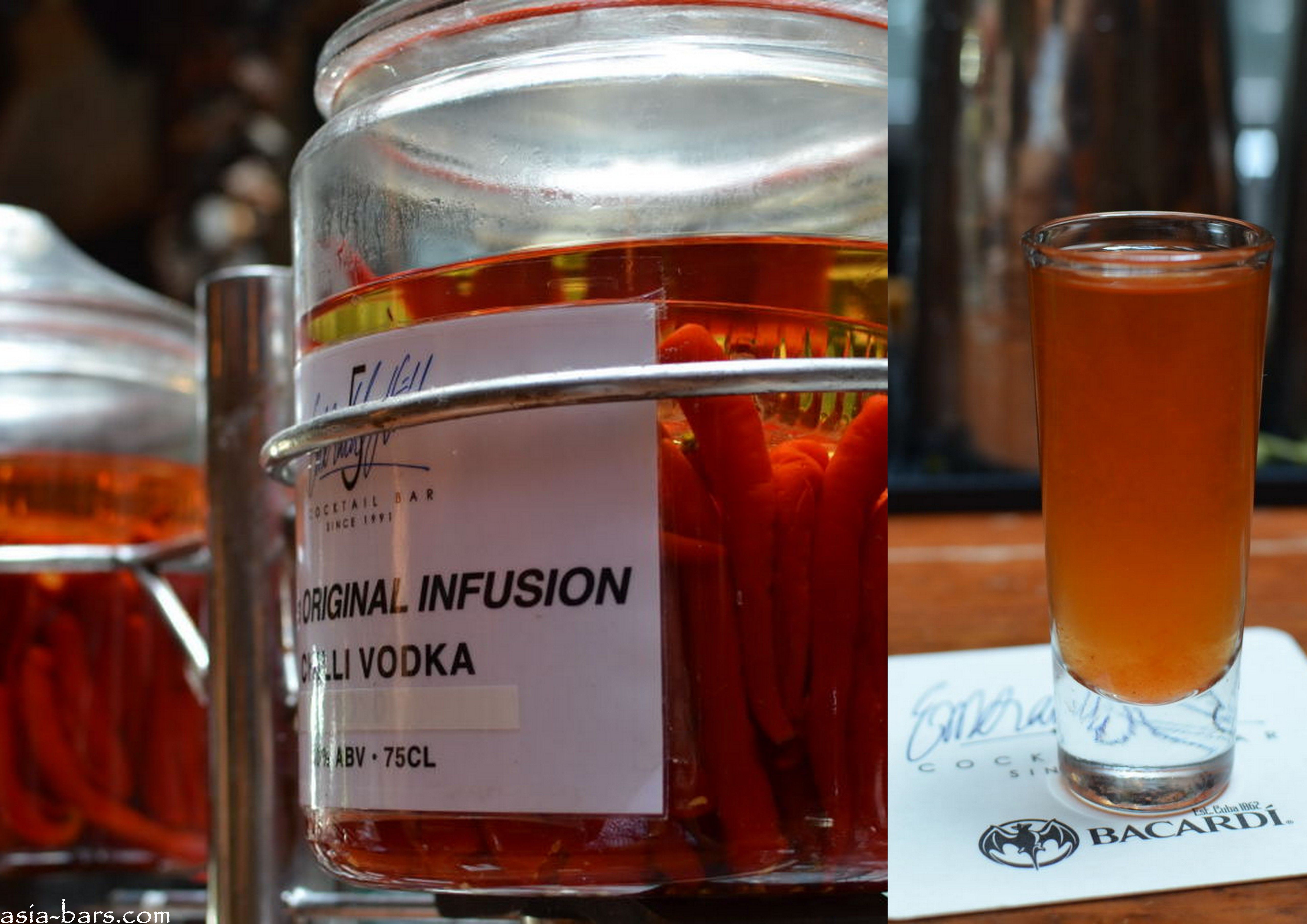 No.5 Original Infusion- Chili Vodka. Premium vodka infused for minimum of 30 days- the fiery drink is served in tall shot glass