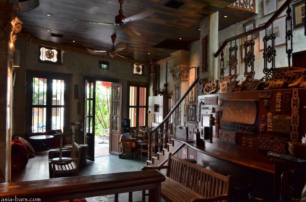 The building occupied by No.5 was originally a private residence, built around the turn of the 20th Century. The unique Peranakan style of architecture has become recognised as a treasured part of Singapore’s heritage, and the conversion of the premises into the No.5 Cocktail Bar was carefully executed as a faithful restoration to the original style and finishes of the period. Combinations of raw concrete walls, timber floor boards and the intricately carved rich timber detailing are authentic to the original construction.