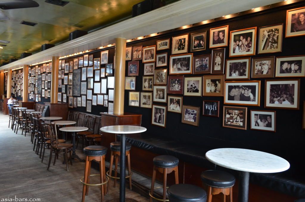 The entire sidewall is adorned with nostalgic old photographs of regular customers and parties from the early days of No.5