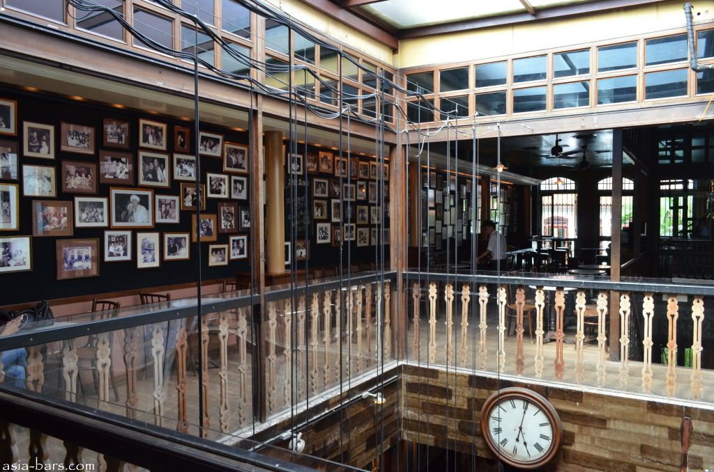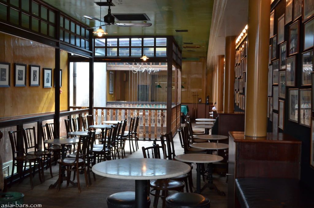 Accessed by the broad timber staircase from the ground floor entrance area, the upper level holds a quieter space decorated in the style of a classic coffee shop- with round white marble table tops and wooden cafe chairs. The walls are adorned with old framed photos recollecting the events, and celebrated bon vivants of the early years of the No.5 Cocktail Bar.