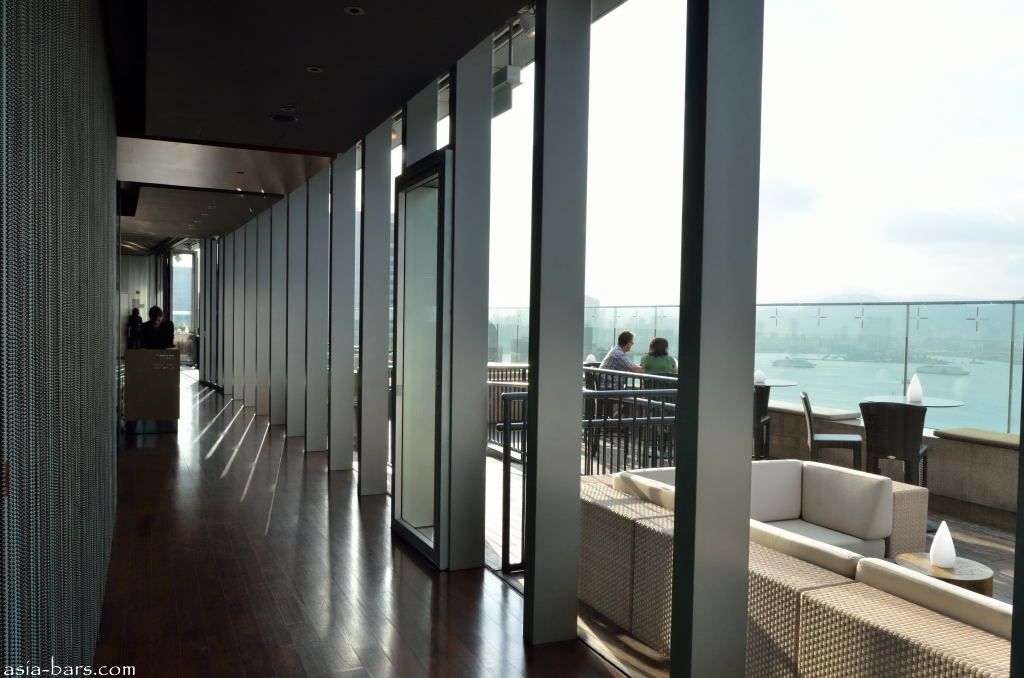 The view from the Lounge area out over the Deck and across Victoria Harbour to Kowloon.
