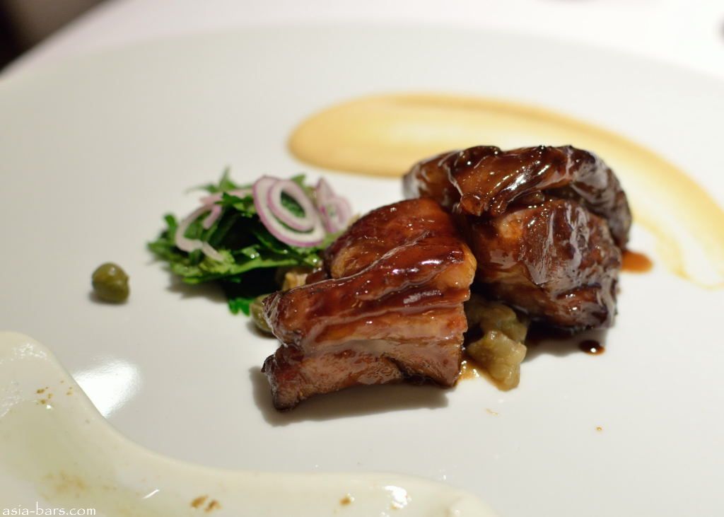 Main Courses include- Suckling Pig – with Lemon Puree, Sauteed Red Endives, Pomegranate Jus; Grilled Kobe Sirloin- Foie Royale, Black Garlic, Sauteed Baby Carrots and Turnip; and Pan-Seared Red Mullet- Tomato and Mint, Pancetta Parcels, Spinach Cream, Roasted Garlic Puree.
