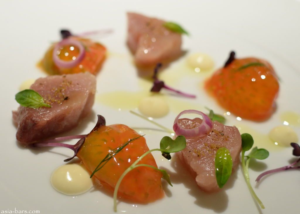 Highlights from the menus include Starters such as Smoked Dutch Eel- with Herring Roe, Pineapple ice cream, and Tomato textures; Foie Micuit- with Rhubarb Compote and Arrope, Apple Cru, Buckwheat Brioche; and Gazpacho- Berries, Oil Caviar, Tomato-Sherry sorbet, Thai Basil.