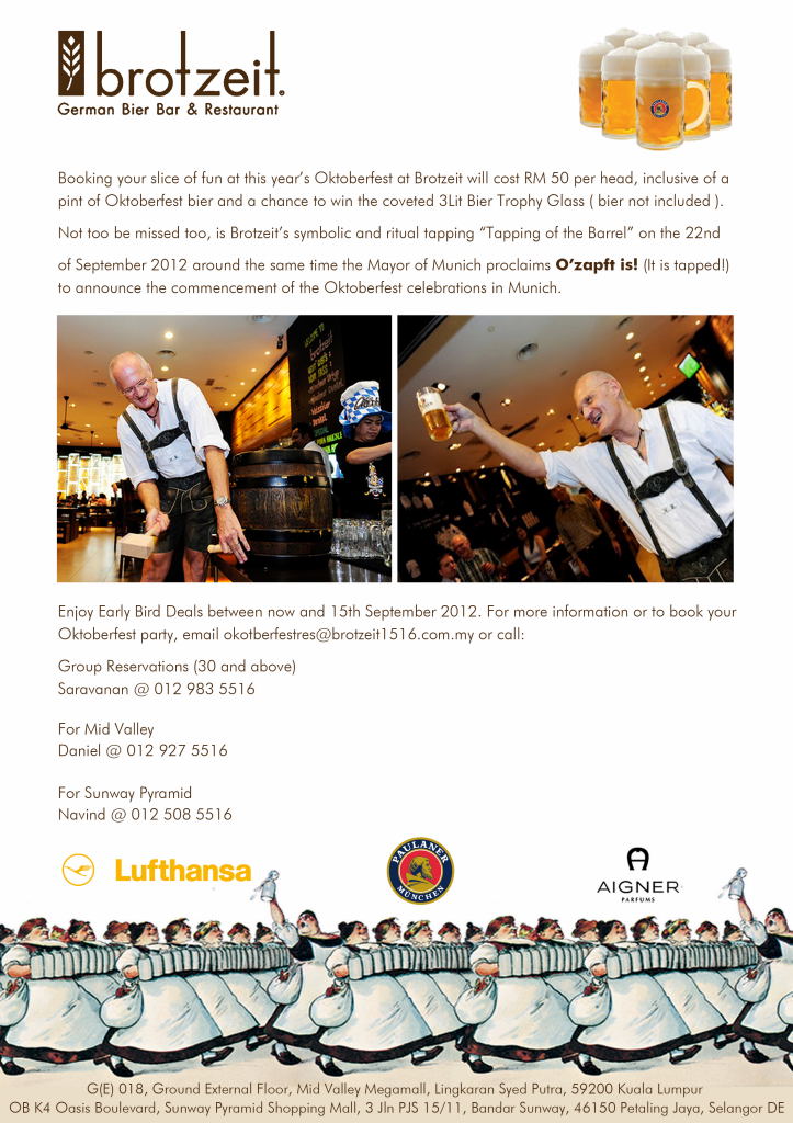 Celebrate Oktoberfest in Malaysia at BROTZEIT German Bier Bar & Restaurants at Mid Valley Megamall & Sunway Pyramid Mall