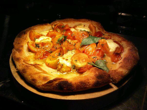 Hand rolled, wood fired pizza- Roasted Tomato “Margherita Rustica”- fresh Thai basil, roasted garlic confit, fresh Rizal dairy mozzarella.