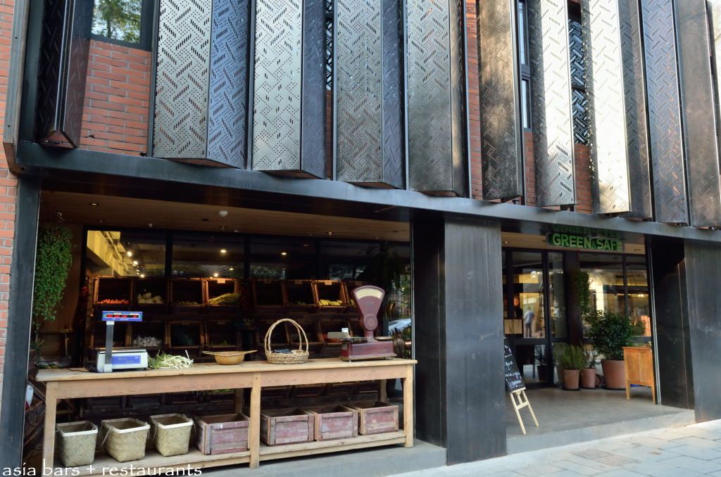 Tapping into the growing concerns about the integrity of the local food supply, and also the trend for more “healthy” eating, Green & Space has recently opened (August 2012) in Shanghai’s former French Concession district, offering local residents an enticing combination of both fresh organic produce, and casual eatery options. Occupying a prominent two story building near the corner of Hengshan Lu and Dongping Lu, Green & Safe is at the nexus of the popular upmarket dining and residential neighborhood. The modern, industrial-loft style space combines an organic Grocery section, with both a casual deli-style cafe on the ground floor, and on the upper level, an evenings-only space for dining and socialising, the restaurant and lounge named Small Plates.