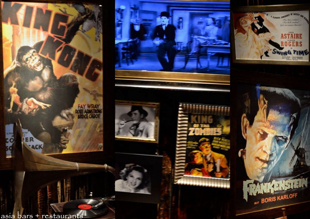 Classic movie posters from the 1930’s, with LCD screen playing Charlie Chaplin B&W movies.