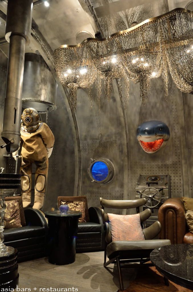 The AZURE room is fashioned from metallic materials- with all manner of gauges, valves and controls in order to resemble the interior of an old submarine