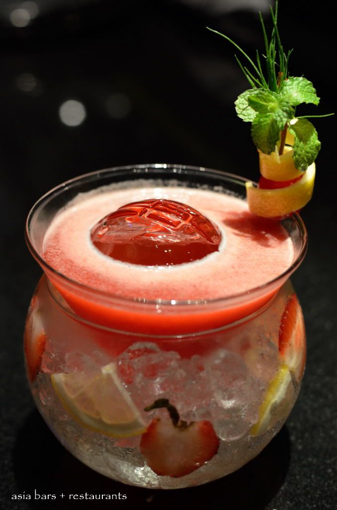 RUBY– Absolut Raspberry, raspberry puree, mint leaves, passion fruit, lime juice & syrup.
