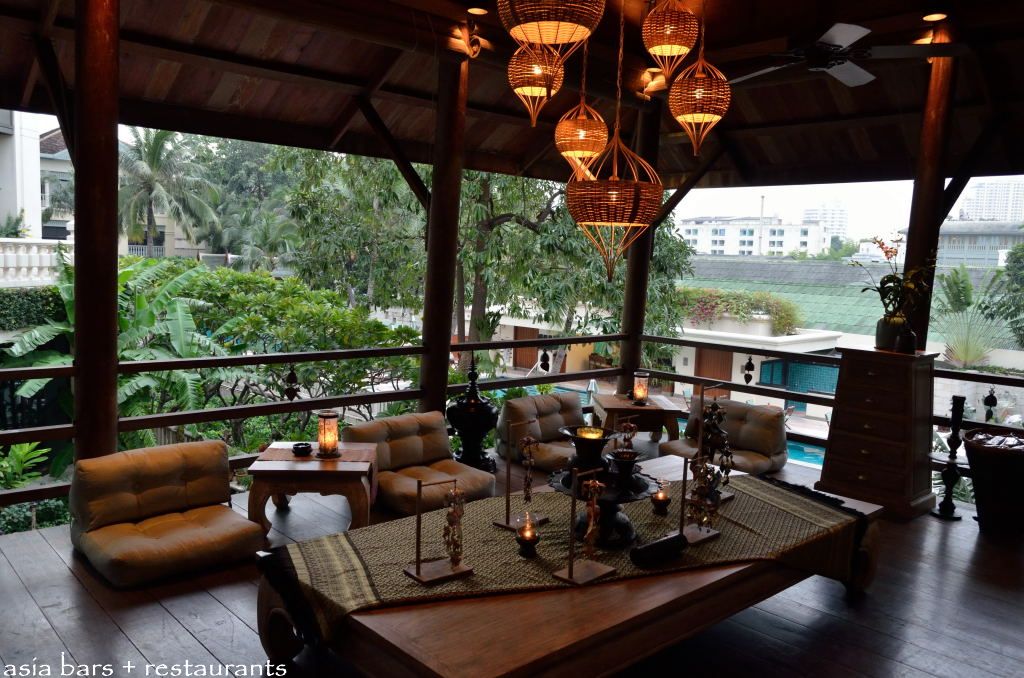 The classic Thai elegance of the upper sala- with traditional low tables, cushion seats and bolsters for comfortable relaxation.