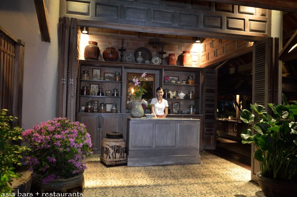 The reception at Thiptara resembles the interior of a traditional Thai teakwood home.