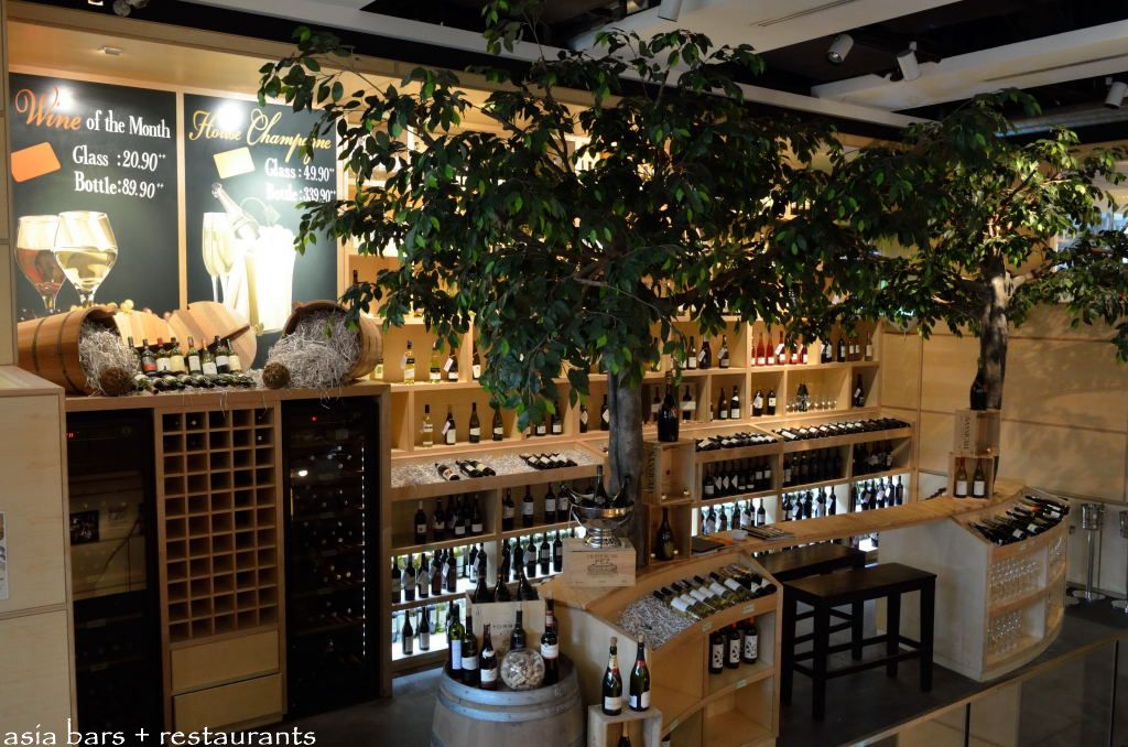 The Winepost occupies a space at the head of the staircase connecting to the bar area on the lower ground floor. The timber shelving showcases hundreds of wine bottles that can be purchased for immediate imbibing in the restaurant and Winepost, or taken away for home consumption.