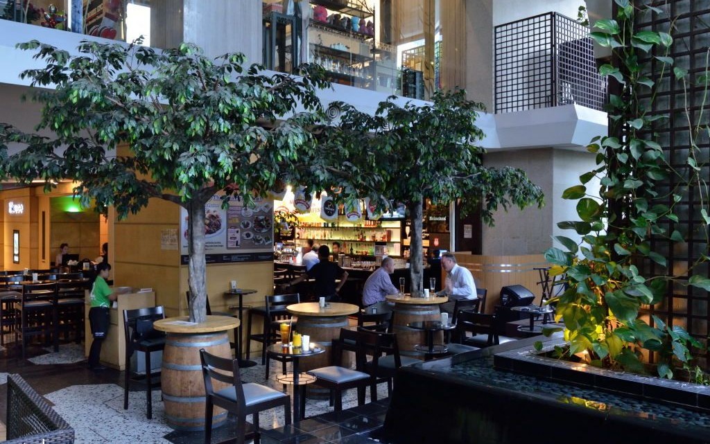 The front section of the restaurant is an open area facing onto the ground floor lobby of the GTower office building. The 12 metre long fruit juice bar is a signature feature of the restaurant.