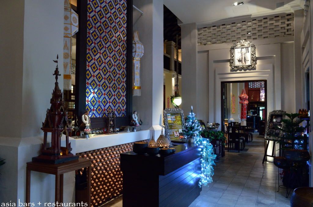 The reception lobby- hand-crafted artifacts add the Thai cultural connection and style to the Thai cuisine.