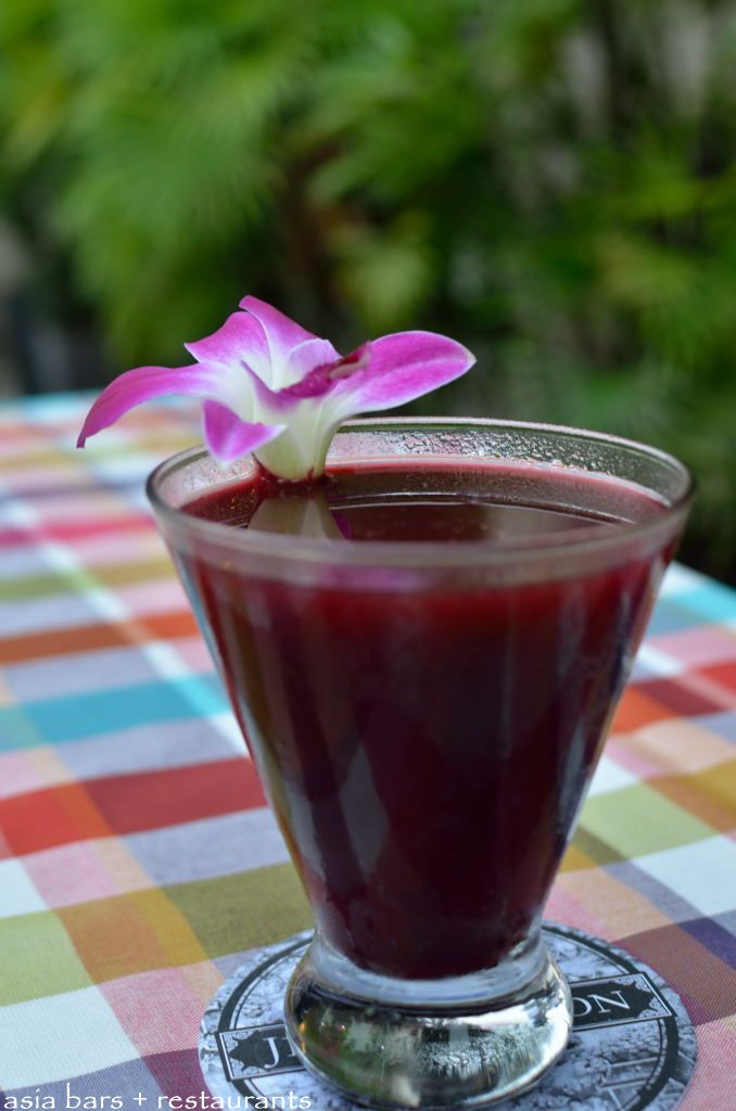 Refreshing beverages are an essential accompaniment to the breadth of tastes and flavours encountered with Thai cuisine. In addition to an extensive wine cellar carefully selected to be sympathetic to the dishes, a good selection of wines can also be ordered by the glass. The bar dispenses a cocktail list of enticing drinks- with an emphasis on fresh fruit ingredients that pair nicely with the cuisine. Most popular are the selections of Mojitos ( 10 varieties), Margaritas & Daiquiris, and Martinis. Signature cocktails include the delicious Thompson Mojito and Thompson Margarita (photographed below), other specialty cocktails include Thompson Mai Thai– Rum, cointreau, orange liqueur, orange, pineapple, grenadine & dark rum; Bangkok Bloody Mary- Chilli infused vodka, nam jim jeaw, tomato juice, fresh lime & spices; and Jim Thompson Cooler– Gin, fresh lime juice, homemade ginger syrup, mint leaves, ginger ale.
