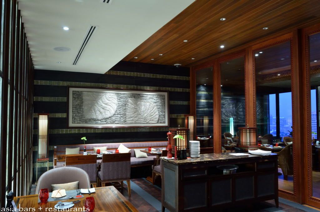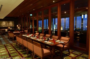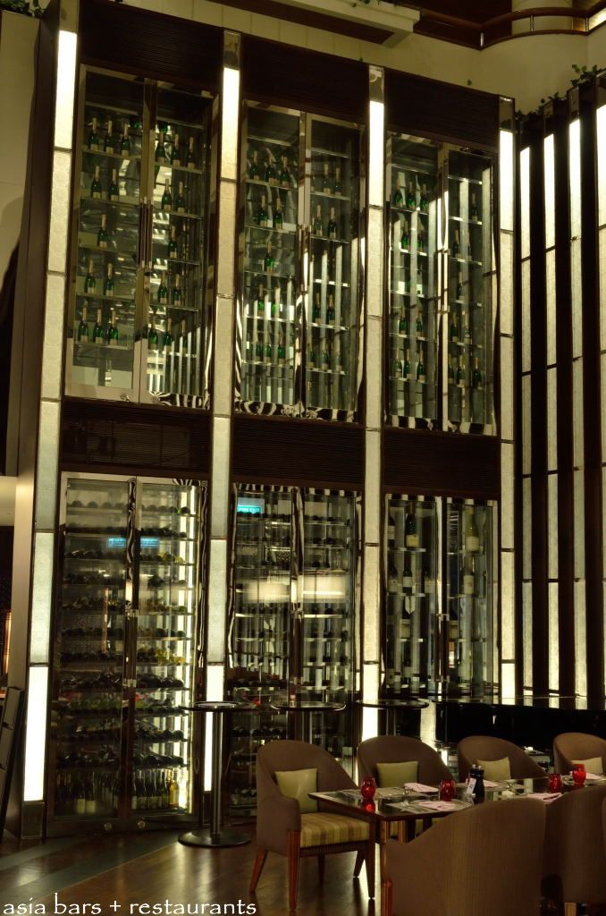 The design concept for Panorama was the creation of renowned Japanese design firm- Design Studio SPIN– who also created the design for the adjoining Finishing Post bar – with both venues being completed in 2010. The audacious design dramatically utilises the vast open space of the internal atrium rising 9 floors above the restaurant floor. Two lustrously crafted open show kitchens anchor the space, with various sections of dining tables, generously separated, positioned across the main floor space. Combinations of sleek, modern materials with the natural warmth of timber flooring and traditional Thai fabric furnishings, create an eminently stylish, yet casual, dining environment. The vertical scale of the space is highlighted with the double height, glass-fronted wine cellars set into one of the restaurant walls.