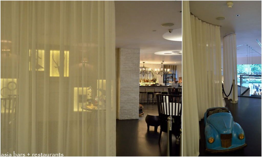The discrete entrance to Playground on the mezzanine level- the bar is revealed behind the sheer curtains.