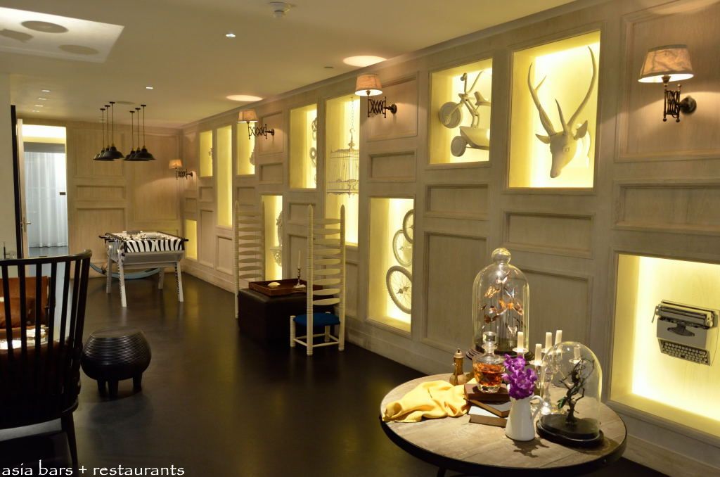 The decor for Playground has a whimsical, retro feel. Objets d’art are inserted into sections of the French-panelled wall of the lounge section.
