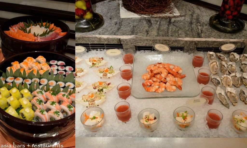 Freshly prepared sushi and sashimi; fresh oysters, prawns, and shellfish.