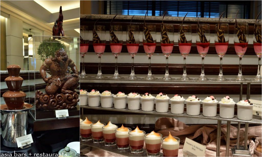 Desserts feature both Thai and Western delicacies- ‘The Peninsula’ Cheesecake with Blackberry compote; Khao-Niew Ma-Muang- Thai mango and sticky rice with coconut cream; and Crunchy Praline and Chocolate Mousse, with raspberry sorbet.