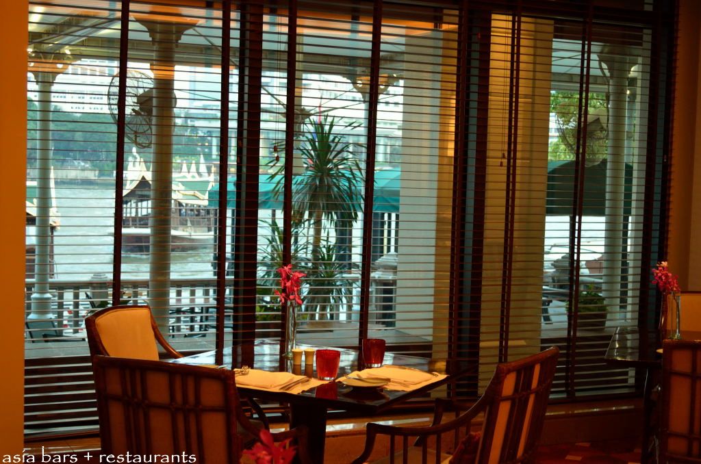 Tables at the front of the room enjoy views of the river and the hotel shuttle boats arriving and departing at the private pier.