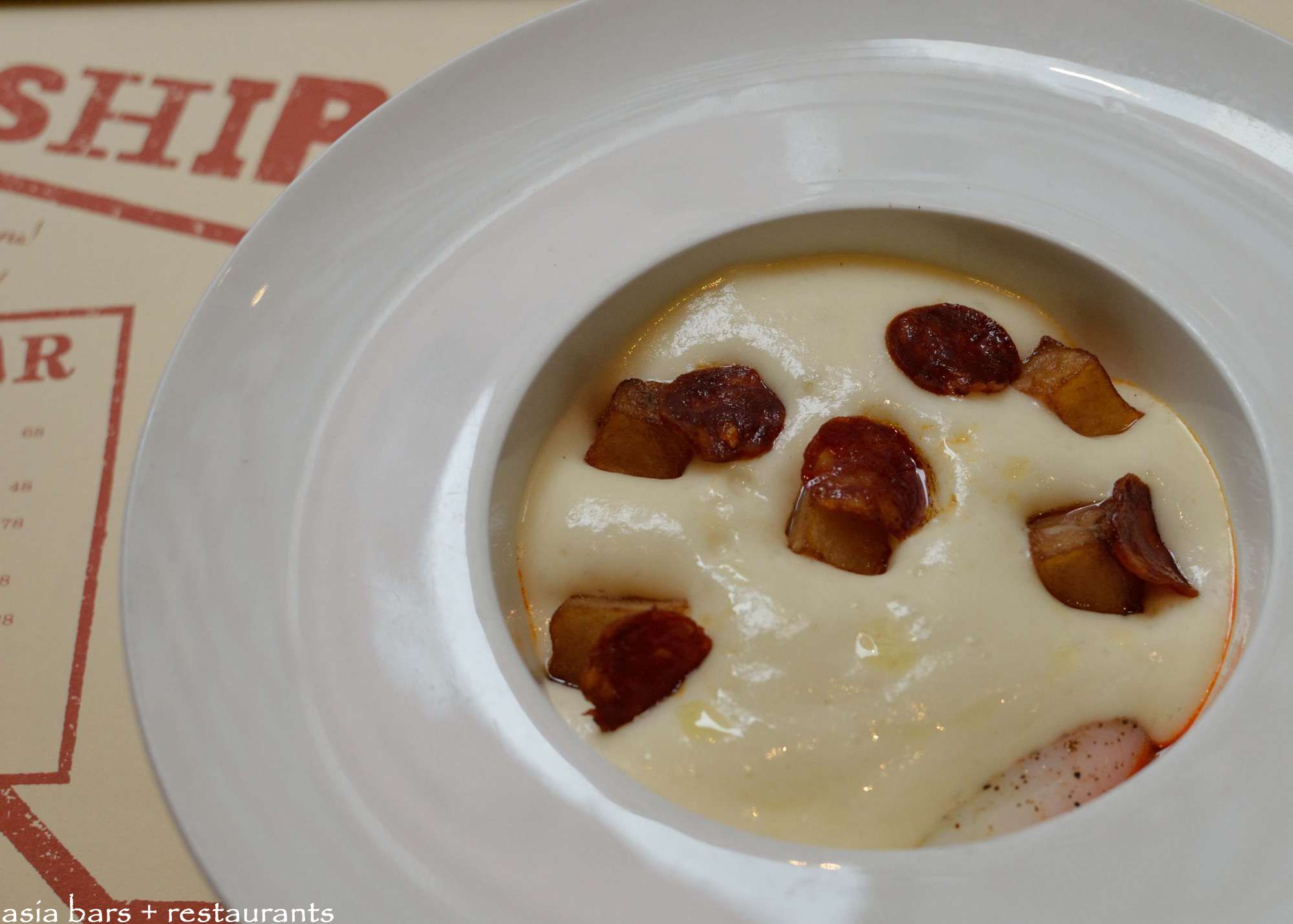 Tapas dining in Hong Kong took on a new dimension with the October 2012 opening of 22 Ships– a compact street front, neighbourhood eatery style restaurant in Wanchai serving a modern, British influenced, Spanish tapas cuisine. The creation of Michelin-starred UK chef James Atherton, and local partner Yenn Wong- founder of the JIA Boutique Hotels Group, 22 Ships embraces the recent international culinary trend for the democratisation of dining- which dispenses with the stuffy formality of the traditional fine dining experience, and brings gourmet cuisine to the street front in an accessible, casual and relaxed setting. An intimately proportioned space- 22 Ships seats just 35 diners at its central U shaped bar and at a window-front open air bench, and with a No Reservations and No Service charge policy, all customers are treated equally and there is not a hint of any pretentiousness behind the counter.